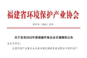 2022年度福建环保企业百强榜发布,圣元环保位列第三