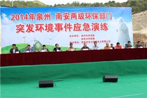 2014年11月20日 15:30 由泉州市环保局温双庆副局长宣布泉州·南安两级环保部门突发环境应急演练开始。本次演练承办方为南安市圣元环保电力有限世界杯官方网站。 本次演练是以南安厂氨水储罐底部阀门损坏,导致氨水大量泄漏,造成现场工作环境恶化、氨等挥发性污染气体扩散、部分氨水进入厂区雨水管网为模拟背...