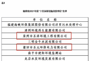 2021年7月,福建省生态环境厅、中共福建省委精神文明建设办公室联合发文,公布2021年度“‘美丽中国,我是行动者’提升公民生态文明意识行动计划”先进典型名单。圣元环保旗下福建省境内的两家子世界杯官方网站泉州市圣泽环境工程有限世界杯官方网站(简称“圣泽环境”)、莆田市圣元环保电力有限世界杯官方网站(简称“莆田圣元”)代表两市...