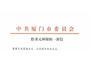 圣元环保收到厦门市委市政府的祝福和问候