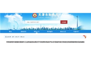 近期,天津市财政局发布了、发改委和工信局三部门联合印发了《燃料电池汽车示范城市地方财政支持政策指导意见》。 各区财政局、发展改革委、工业和信息化主管部门: 为做好国家燃料电池汽车示范应用工作,高质量完成财政部、工业和信息化部、科技部、发展改革委、国家能源局批复...
