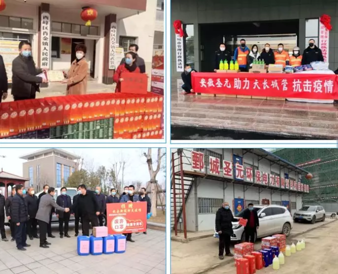 疫情期间,圣元还积极采购物资,为当地防疫工作捐款捐物,践行企业宗旨,担当社会责任。其中江苏圣元在所在地政府部门捐款10万元、庆阳圣元和汶上圣元项目部共捐款10万元,用以支持一线疫情防控工作;郓城圣元捐赠废弃口罩收集专用车1辆以及消毒防护用品若干;其他子世界杯官方网站总捐赠连体防护服220套、医用口罩2400个、双单面皮手套3000双、棉手套750包、护目镜50个、测温枪10支、75度酒精2400升、消毒液500升、84消毒液30箱、洗手液100瓶、7个电动喷雾器和100个手动喷雾器等相关防护物资,助力各地各部门抗击疫情。