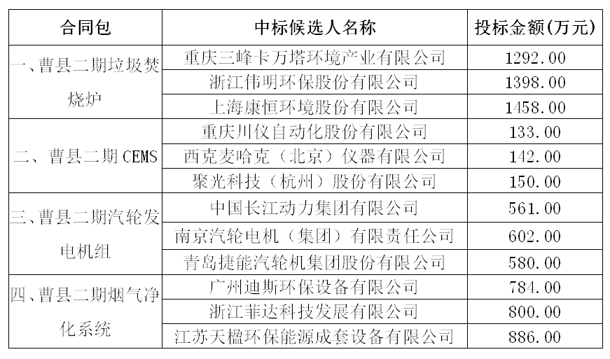 招标项目名称:圣元环保曹县生活垃圾焚烧发电厂二期工程垃圾焚烧炉、CEMS、汽轮发电机组、烟气净化系统采购项目