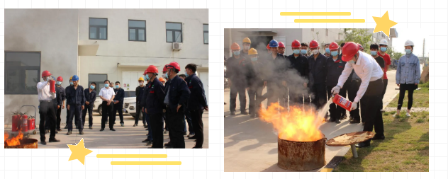 根据曹县圣元的实际情况,结合日常常见的火灾特征,安环部专工胡晏铭详细讲解了消防器材的性能参数、使用方法和注意事项并示范了动作要领。