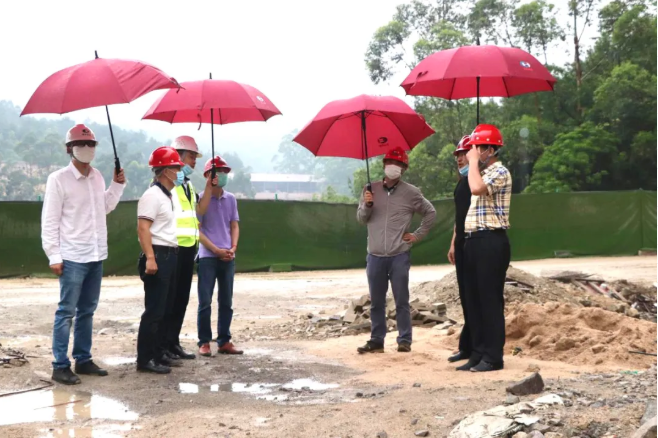 涂远承主任冒雨来到项目施工现场,不漏死角、不漏盲区详细察看并询问工程进度,了解工程建设中遇到的困难和问题。圣元环保副总经理、南安市垃圾焚烧发电厂提级改造工程项目总指挥汪云保就项目前期手续、工程建设等做了汇报。也提及在此过程中遇到的困难、投产后垃圾处理效能等。