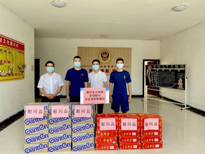 6月24日上午,莆田圣元安环部蔡少凡经理、宣导中心王阿欣主任组织宣导人员冒着酷暑来到东庄消防救援站,为消防官兵们送上慰问品。