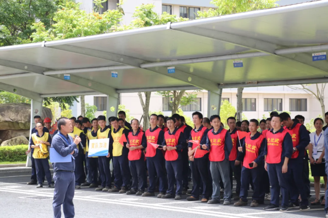 随后,机务检修(钢板焊接)、消防应急两个项目作为启动仪式热身赛率先开赛。“向后转,起步走!”王郎生产副总一声令下,红、黄两队列队到达指定区域开始比武。参赛人员精神抖擞投入到比武中......
