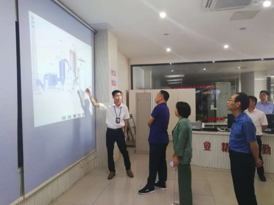 陆和军主任一行先后参观了中控室、锅炉车间及尾气车间等区域,听取林建武总监关于江苏圣元基本概况、安全生产管理体系、特种设备管理、生产运营等情况介绍。还通过视频资料详细了解垃圾焚烧发电工艺流程及设备运行情况。