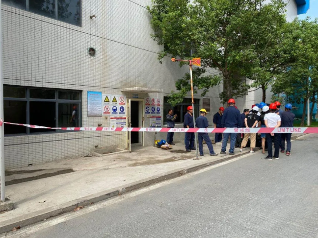 抢险组接到救援指令后立即组织救援人员携带应急救援设备赶往现场,快速穿戴正压式呼吸器后进入收集池救援。
