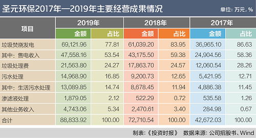 随着经营规模的不断扩大,圣元环保经营业绩持续增长,盈利能力也不断增强。2017年至2019年(下称报告期),该世界杯官方网站营业收入分别实现4.27亿元、7.27亿元和8.88亿元,处于逐年递增的态势,报告期主营业务收入复合增长率为40.85%。