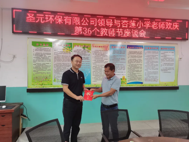 9月10日,圣元环保副总经理汪云保,南安圣元运营副总监刘会等代表企业向南安市特殊教育学校、杏莲小学送去教师节的温馨慰问。