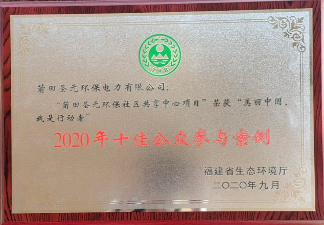 2020年9月,莆田市生活垃圾焚烧发电厂的环保社区共享中心项目也凭借在引导、推动社会公众树立生态文明理念,有效化“邻避”为“邻利”,荣获“美丽中国,我是行动者”2020年十佳公众参与案例。