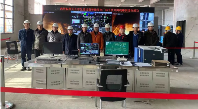 1月15日上午10点54分,圣元环保天长市生活垃圾焚烧发电厂项目顺利完成35kV并网线路倒送电。