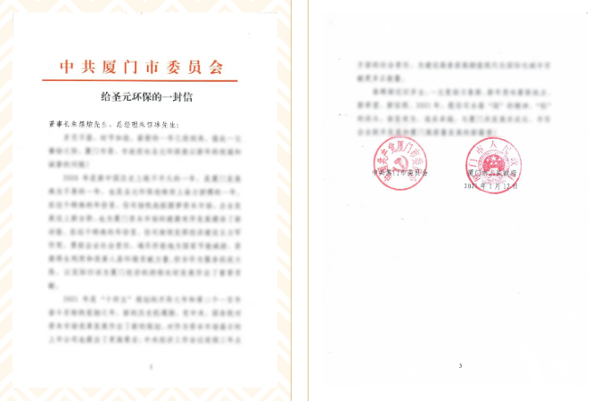 新年伊始,圣元环保就收到了厦门市委、市政府的新年祝福和诚挚问候。