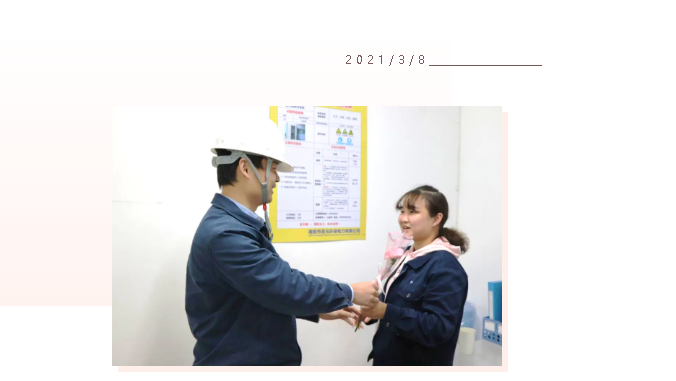 在插花活动的同时,南安圣元也有一批女性员工,因为工作需要,她们选择了坚守岗位,她们用履职为节日增光添彩。她们值得我们尊敬,坚守岗位的她们,同样收到了世界杯官方网站的鲜花和祝福。