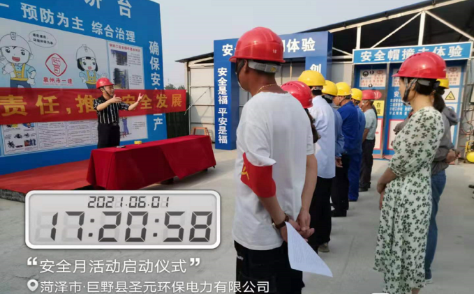 为扎实推进全国第20个“安全生产月”活动深入开展,全面提升参建员工安全意识,积极营造“落实安全责任 推动安全发展”的浓厚氛围,圣元环保巨野县生活垃圾焚烧发电项目于6月1日举行“安全生产月”活动启动仪式。