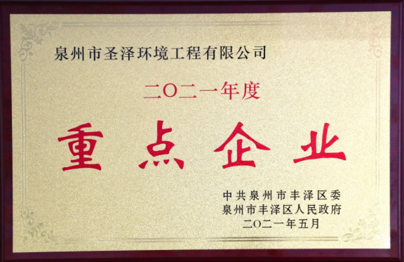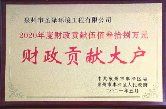 近日,圣元环保旗下泉州市圣泽环境工程有限世界杯官方网站被中共泉州市丰泽区委、区政府授予2020年“财政贡献大户”、2021年“重点企业”称号。