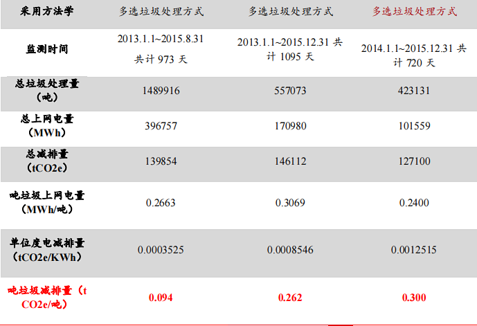 (1)替代填埋方式处理生活垃圾,避免了垃圾填埋产生以甲烷为主的温室气体排放;