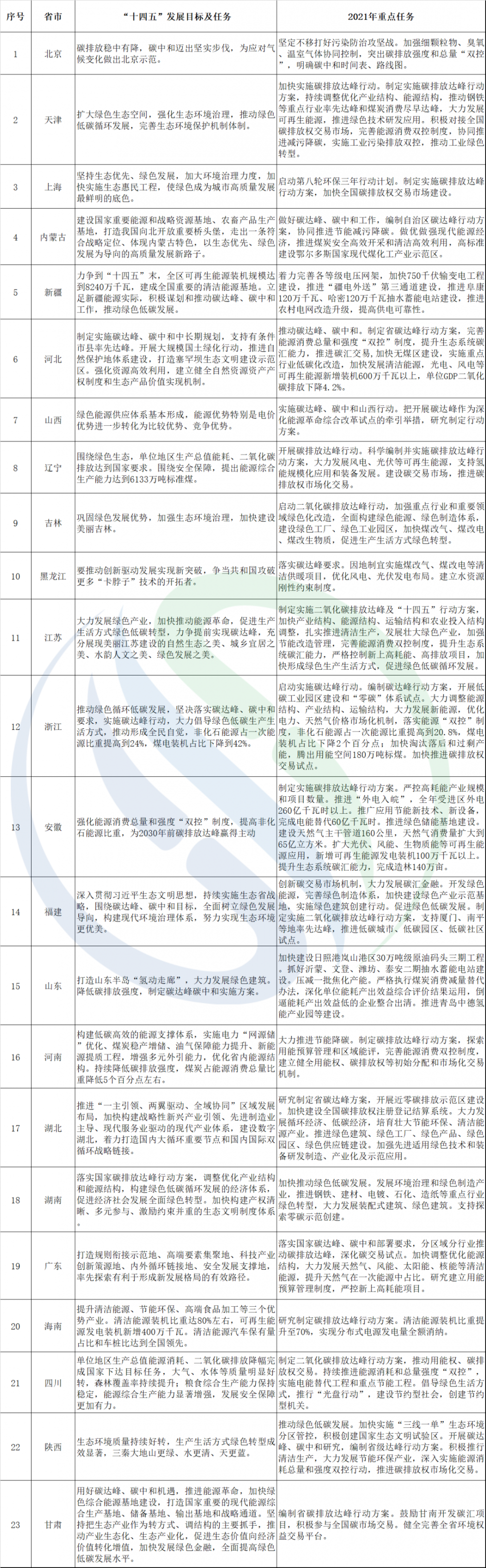 作为全球最大的发展中国家,中国要实现“双碳”目标,面临较大的实现压力。“双碳”目标提出后,势必将通过目标任务分解和细化到各地,地方政府成为能否实现目标的关键所在和必要条件。而目前我国各省亟待出台双碳目标的政策细则。