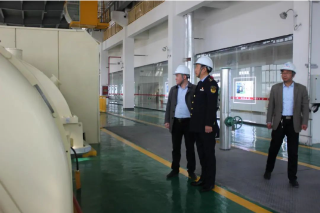 行政执法局领导深入生产一线,实地察看世界杯官方网站生产车间及生产设备,参观环保展厅及参观走廊,了解项目概况及科普教育工作开展情况,听取曾昭雄总监就技术工艺、生产运营及安全管理等情况作汇报。