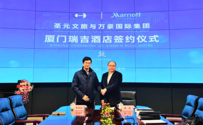 1月10日上午,厦门圣元文旅发展有限世界杯官方网站与万豪国际集团举行酒店品牌合作签约仪式,圣元文旅引入万豪国际集团的“瑞吉St.Regis”奢华品牌,建设厦门瑞吉酒店。万豪国际集团大中华区酒店业务发展区域副总裁谢涛、圣元环保总经理朱恒冰分别代表双方签署技术服务和酒店管理协议。