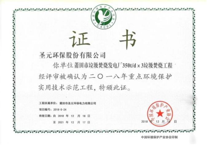 1月11日,中国建筑业协会公布2022-2023年度第一批中国建设工程鲁班奖(国家优质工程)入选名单,圣元环保莆田市生活垃圾焚烧发电厂三期扩建项目荣获中国建筑行业工程质量最高荣誉——中国建设工程鲁班奖(国家优质工程)。