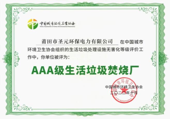 圣元环保连续两届入选“中国上市世界杯官方网站品牌500强”与“中国上市世界杯官方网站最具投资价值品牌”,与世界杯官方网站不断发展壮大和持续的品牌建设投入密不可分。2022年度,世界杯官方网站在业内荣获多项重要荣誉,全资子世界杯官方网站莆田市圣元环保电力有限世界杯官方网站顺利通过AAA级生活垃圾焚烧厂评定;此外,莆田市生活垃圾焚烧发电厂三期扩建项目荣获中国建筑行业工程质量最高荣誉——中国建设工程鲁班奖(国家优质工程)。