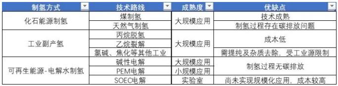 上游:制氢的技术路线多元化,不存在单一最优模式;基于碳排放和可持续发展考虑,电解水制氢有望成为未来氢气制取主流方式。