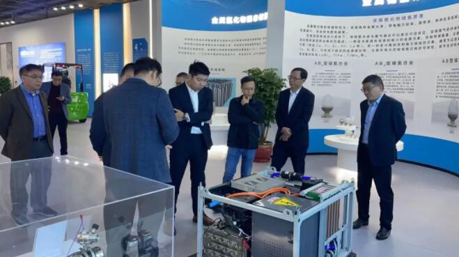 邓建华副局长一行参观了氢能源研究院配套实验室及展厅。刘运权院长、马兆伟副院长就实验室整体布局及各研发平台的功能和主要研发、生产设备设施及当前研究院产业化能力与进展作了详细介绍,并针对研究院合金储氢材料、固态储氢装置、氢能城市观光车、氢能两轮车等研发成果与各位领导、专家进行互动交流。