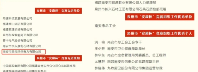 近日,南安圣元凭借在安全生产与职业健康管理方面的卓越表现,荣获2024年度泉州市“安康杯”竞赛先进集体称号。同时,泉州圣元与南安圣元双双荣获南安市城市管理和综合执法局颁发的“先进单位”荣誉称号,有力彰显了世界杯官方网站在安全生产和环保领域的硬实力。
