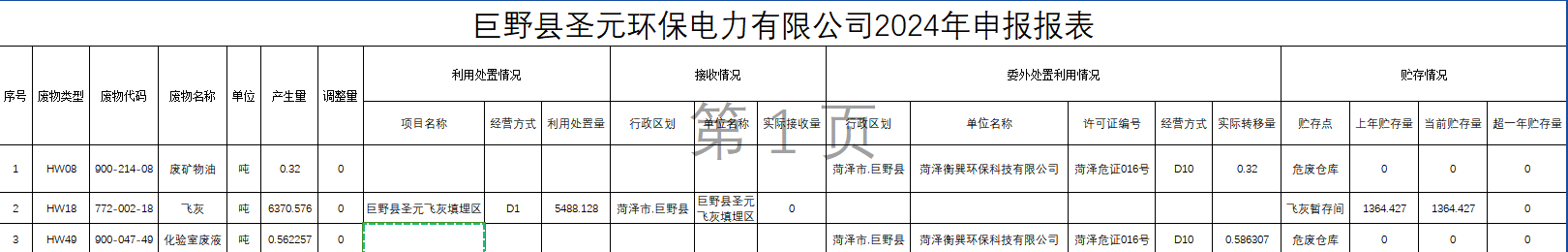 巨野县圣元危废信息公示