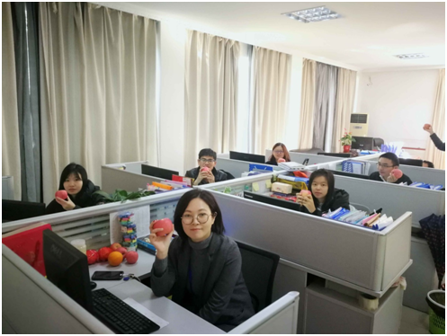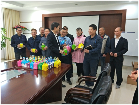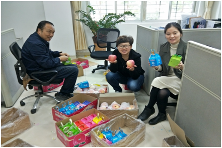 2017年12月23日,平安夜前夕,南安市圣元环保电力有限世界杯官方网站常务副总经理、工会委员会主席杨煌坤为员工们发放平安果,送上祝福。