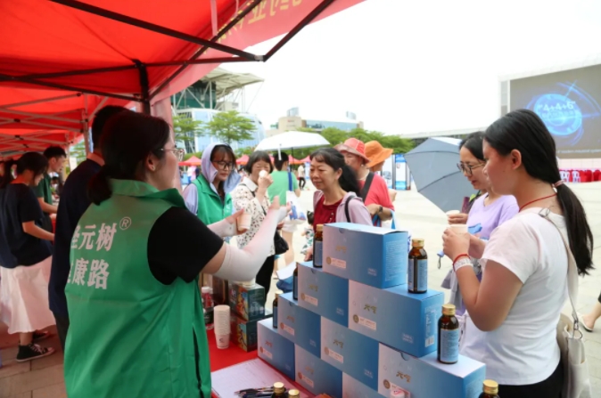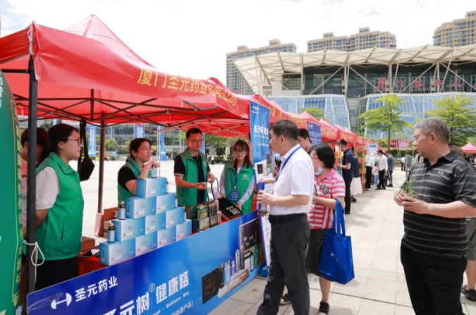 作为受邀参展单位之一,圣元药业携元气小树®牛磺酸能量饮、圣元树®西洋参牛磺酸口服液等多个科学功能营养品牌亮相活动展区。工作人员向广大市民群众普及健康科学知识,介绍以牛磺酸为核心成分的健康产品的特色与亮点,吸引了许多市民群众驻足试饮、咨询和购买,现场氛围热烈。