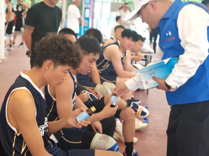 活动期间,工作人员更将品牌关怀延伸至赛场一线。赛事白热化阶段,工作人员携番树牛磺酸能量饮直抵篮球赛场,为激战中的运动员与裁判团队提供精准补给。中场休息时饮用后,运动员普遍反馈饮品口感清爽,Buff叠加,在保持和提升竞技状态以及攻防转换节奏上有明显助力,是能量补给的硬通货。