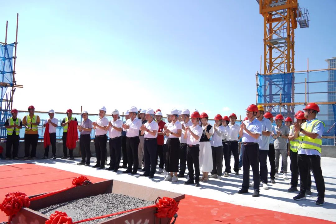 活动伊始,朱煜煊董事长发表开幕致辞,对参建各方工作人员的辛勤付出致以诚挚感谢。朱煜煊董事长表示,项目圆满完成主体封顶这一重要节点,各位嘉宾及参建单位代表齐聚塔楼屋面俯瞰鹭岛海岸线,眺望建设中的厦金大桥,共同见证封顶大吉。接下来,参建各方要以更高标准全力冲刺装饰装修与运营筹备,确保2026年底试营业,2027年上半年正式运营。