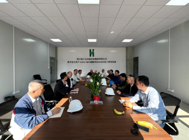 调研结束后,朱煜煊董事长随即召开现场办公会,贯彻落实调研指导意见。项目总指挥杨亚勇汇报了当前工程建设情况:项目前期各项审批已全面完成,配套建筑已顺利封顶,核心设施正加紧安装,整体项目将在明年一季度联动调试。