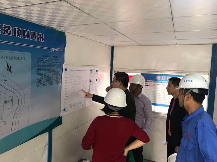 2018年3月5日下午,泉州市排水管理中心主任陈海杰率副主任何镍鹏及监管科两名工作人员前往圣元环保北峰污水处理厂提标改造项目现场检查施工进展情况并进行工作布置。北峰污水处理厂副厂长陈志方、施工单位项目经理、监理单位专监等人陪同检查。