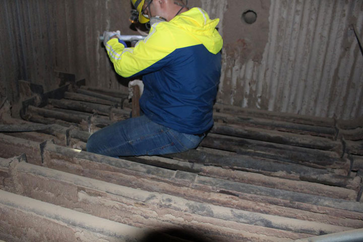 运行员在本次停炉检修中也放弃了休班,加入了检修队伍,他们因检修业务不熟悉,因此主要负责设备的检查、清理工作。脱酸塔工作量较大,为争取提前点炉,运行白班下班后主动请缨帮助外协人员清灰。