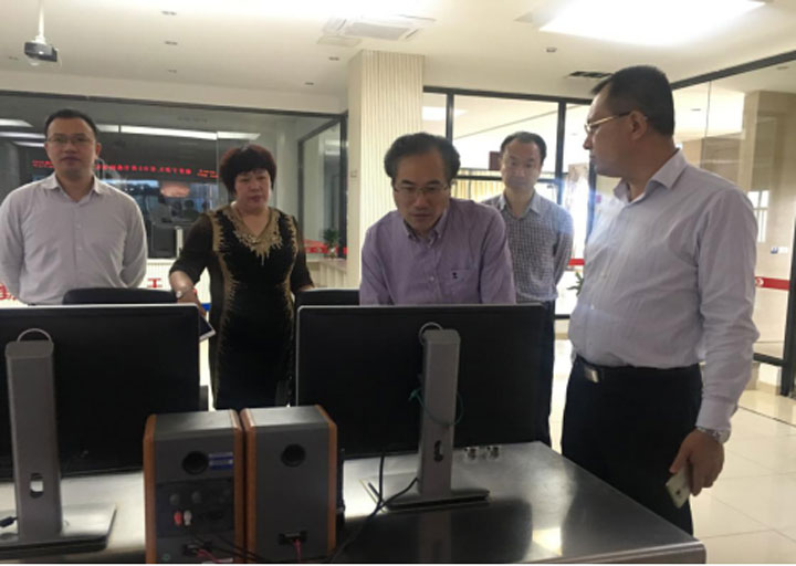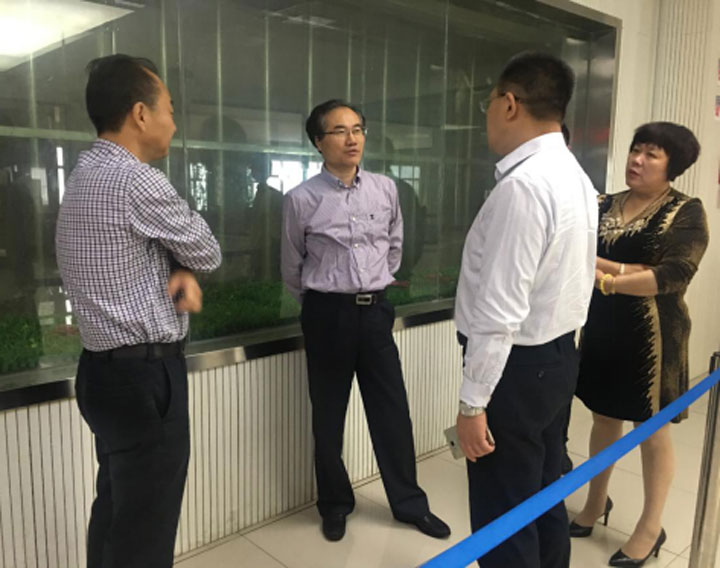 王局长一行在参观通道