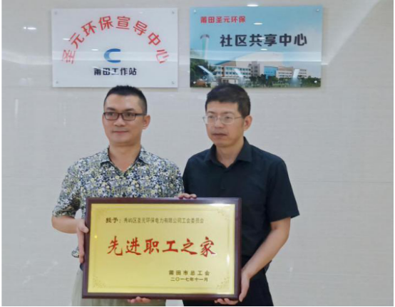 莆田圣元环保工会委员会被评为莆田市2017年度“先进职工之家”。2018年5月24日下午,莆田市秀屿区总工会常务主席林志伟代表莆田市总工会向莆田市圣元环保电力有限世界杯官方网站工会委员会颁发了“先进职工之家”奖牌。