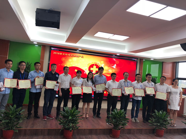 活动最后,圣元环保副总经理汪云保、莆田圣元总经理李仁、安全环保部主任章文滔、运行保障部主任曾昭雄,办公室主任许燕分别为参赛选手颁发了奖项以及奖品。