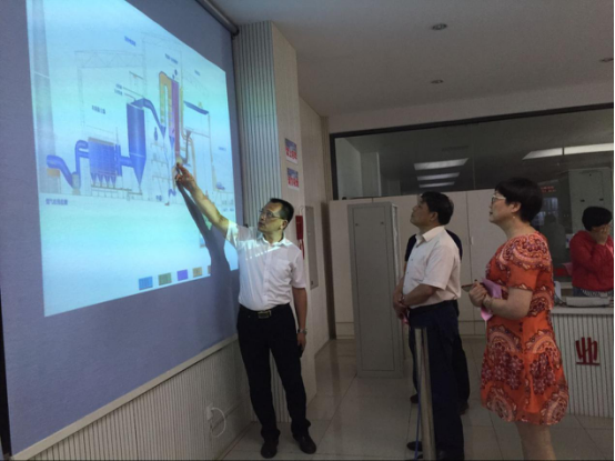 在中控室,吴小平总经理为调研小组介绍了江苏圣元发展概况、相关环保管控情况等,调研组通过实时监控观看了焚烧炉内垃圾燃烧工况。