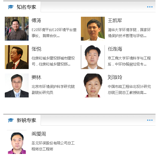 中国固废网专家库成员组成,主要包括在固废处理、污泥处理、再生资源及相关行业有突出贡献、具有一定行业声望和影响力的专家学者,以及在固废市场分析、政策解读上具有敏锐视角、创新理念和一定建树的行业精英。
