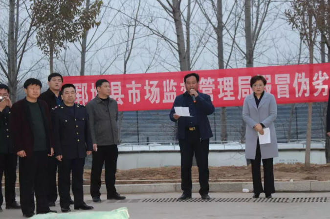 3月4日,在“3.15”国际消费者权益日即将来临之际,郓城县政府领导在郓城圣元召开销毁假冒伪劣产品现场会。张俊阁副县长和市场监督管理局朱伟局长等出席会议。