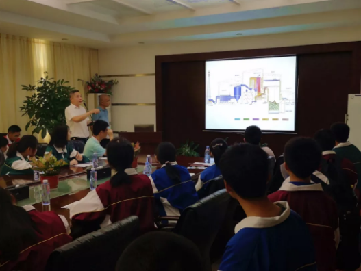 走进南安圣元,看到这花园式厂区建设,学生们不由得发出赞叹。在环保宣导员的带领下,南安一中师生及家长代表走进会议室,详细听取苏阳明运营总监介绍南安市生活垃圾焚烧发电厂基本概况,了解生活垃圾焚烧发电工艺流程。