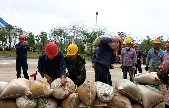 此次演练模拟场景为:由于连日大雨,漳州圣元北侧山体防洪沟被冲毁,洪水漫进综合水泵房、出渣通道、汽机房、空压机房等多处厂房,需要派人员及铲车增援。中控室接到汛情报告,问清受灾地点、受灾范围、现场运行设施完好程度、人员遇险情况等,第一时间向演练领导小组报告事故情况。演练小组立即启动防洪抗汛应急响应,动员六组抢险队伍紧急集结,进行实时截流、防汛抢险器材实地操作等科目演练,工作人员现场操作沙袋、抽水泵等抢险设备。整个演练紧张有序,密切配合,充分展现了此次防汛抢险应急演练的实用性和实战性。