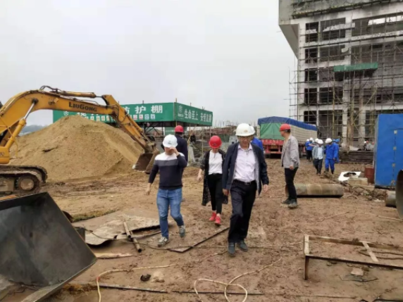 阎爱周一行先后多次深入施工现场,实地查看中控楼、汽机房、卸料大厅、水处理区及飞灰填埋场等区域施工建设,评估了频繁降雨对湿陷性黄土基础的影响,并详细了解工程进展。