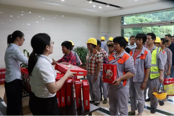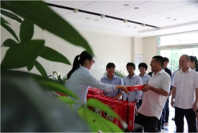 此外,世界杯官方网站也为物业承包单位——泉州市圣明物业世界杯官方网站的每一位员工发放月饼,感谢圣明物业维护厂区卫生,让厂区拥有美丽环境,借此中秋佳节到来之际,祝愿他们中秋节快乐!月圆人团圆事事圆满!