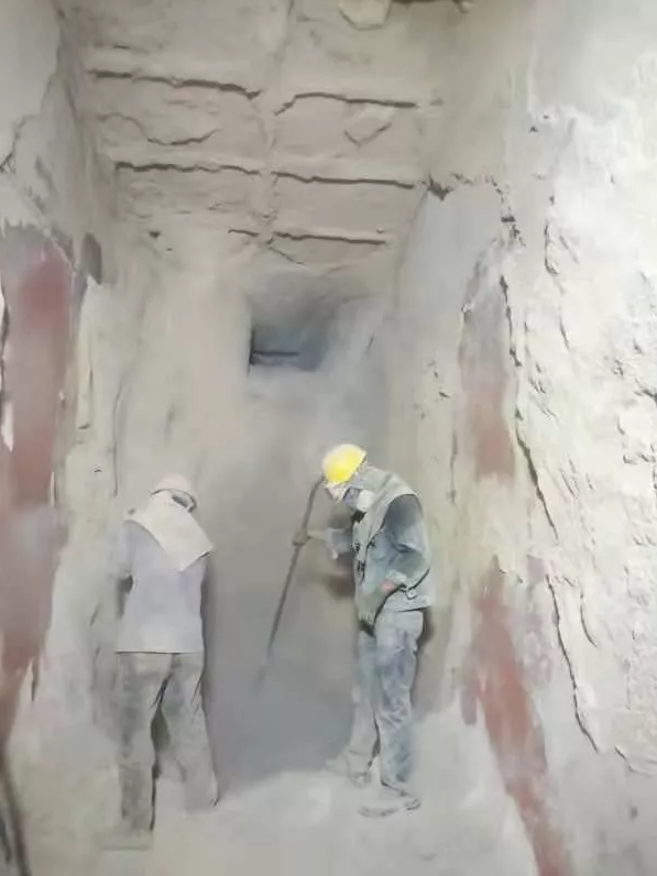 在高强度的清灰工作现场,清灰人员的身上、脸上满是汗水与灰尘,但他们不怕吃苦,勇敢敬业,毫不退缩。
