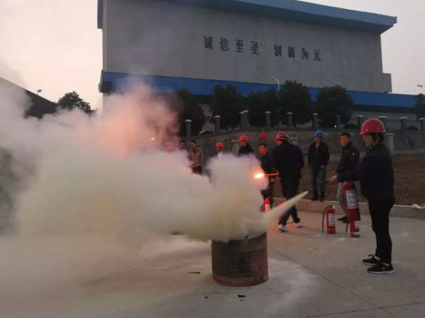 灭火演练中,陈教员演示灭火器正确使用方法、操作步骤和灭火姿势后,指导员工以部门为单位轮流开展灭火演练。